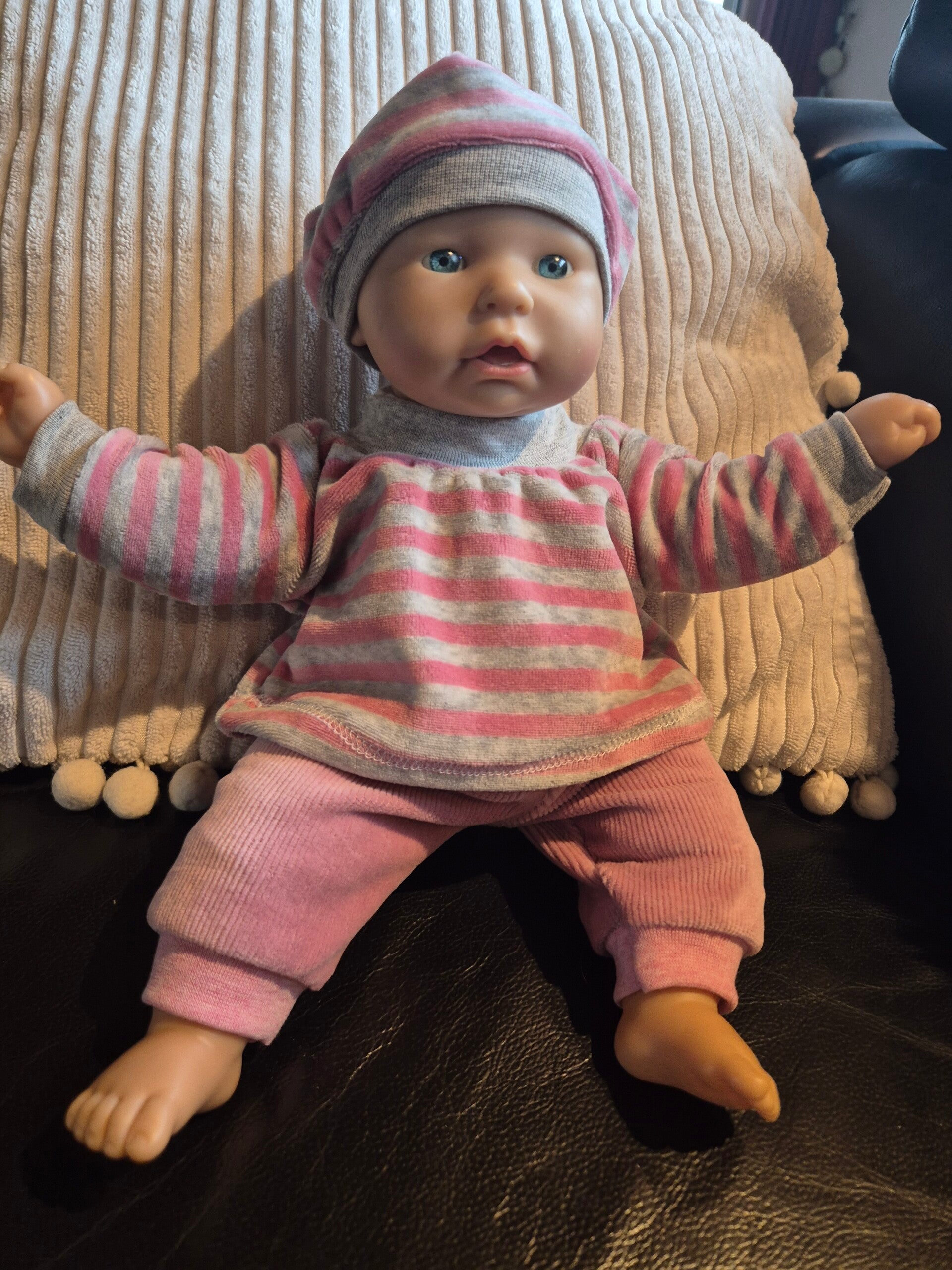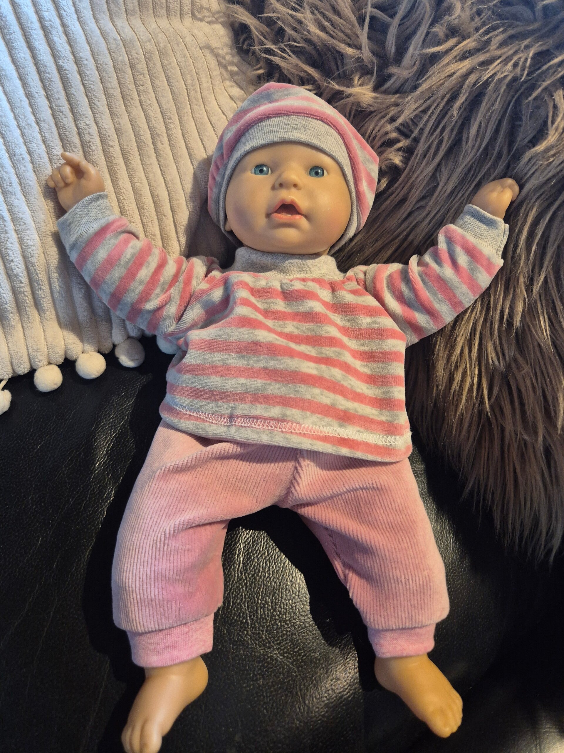 Herziger Dreiteiler in pink/grau.