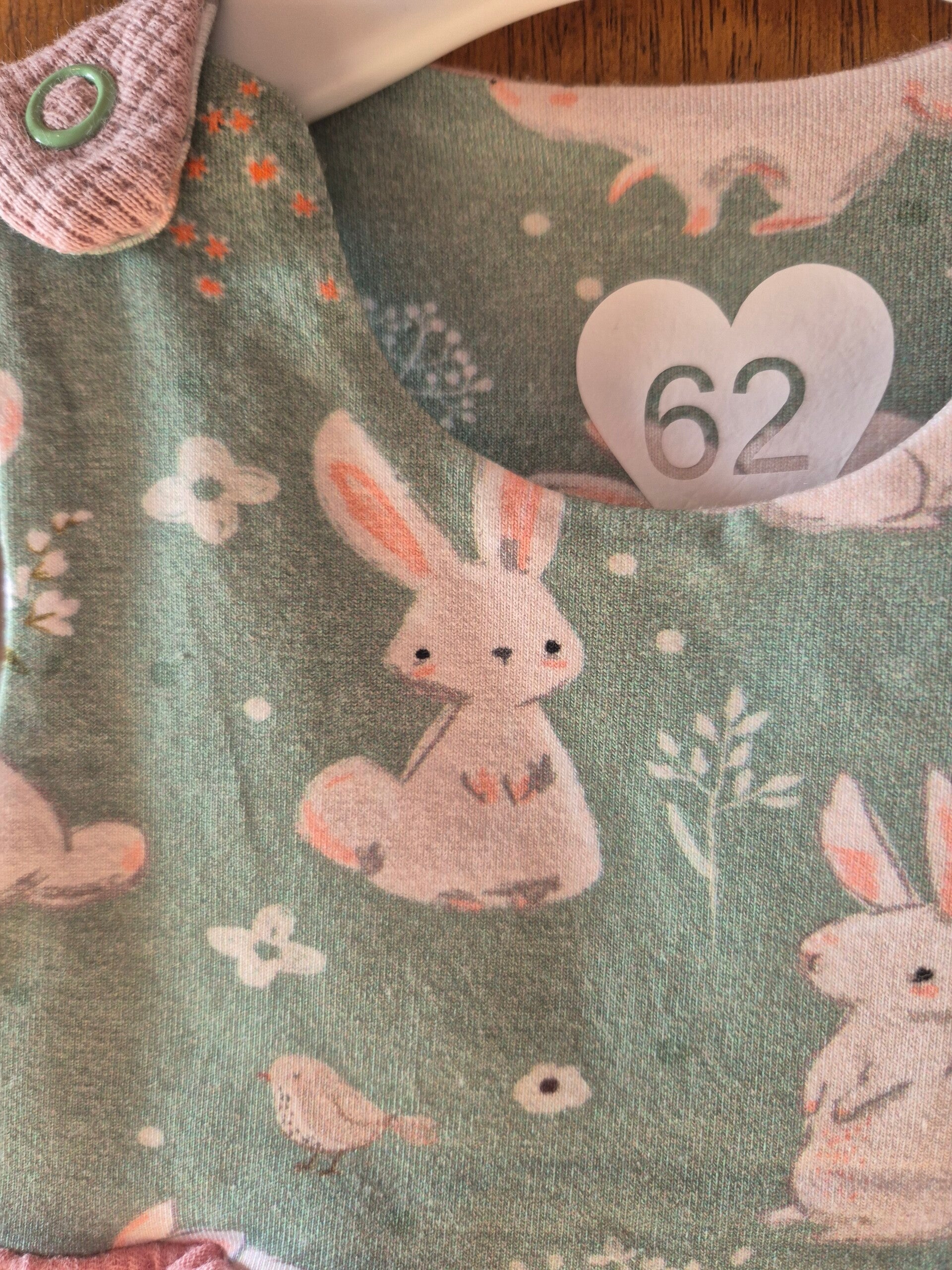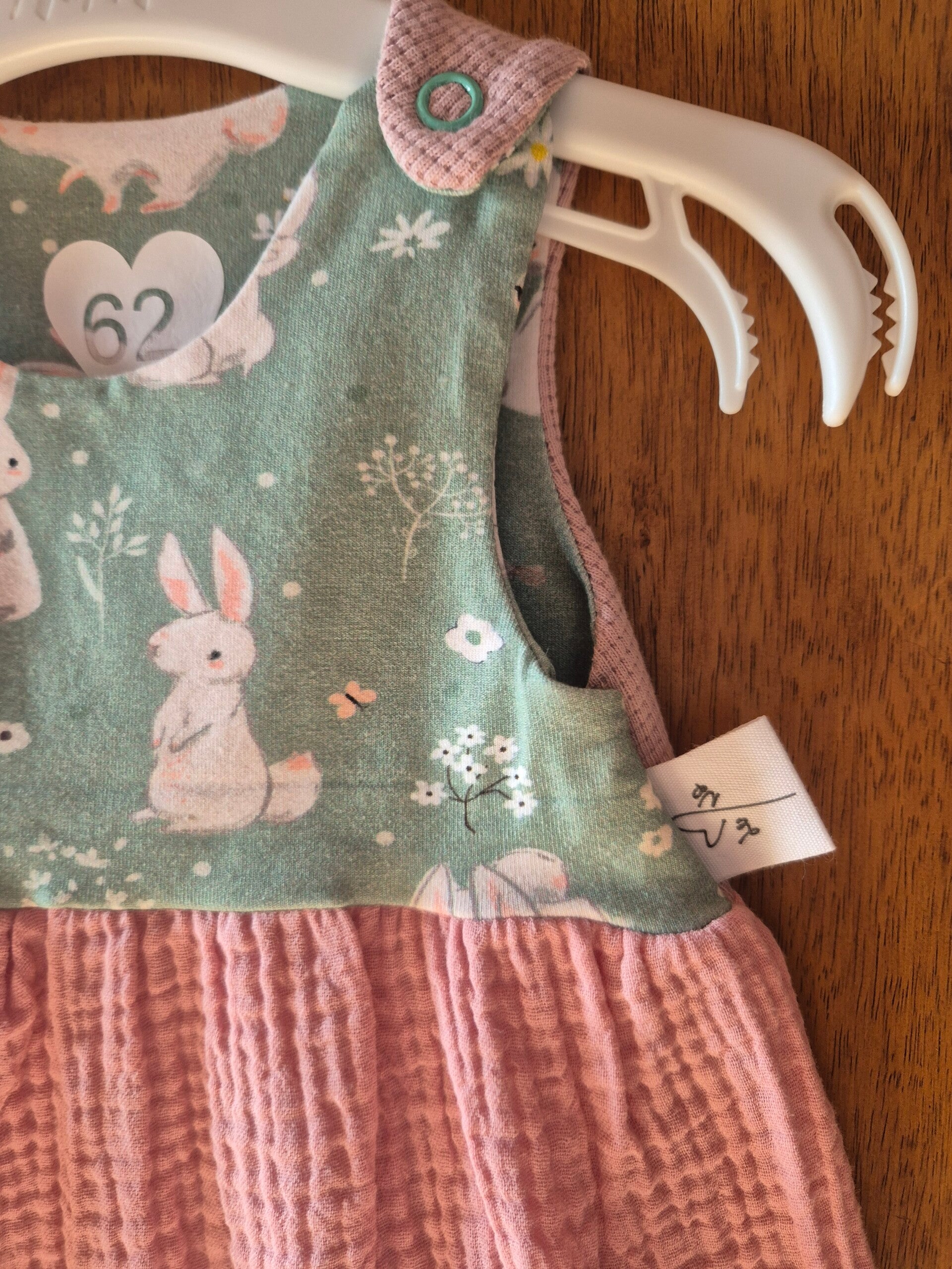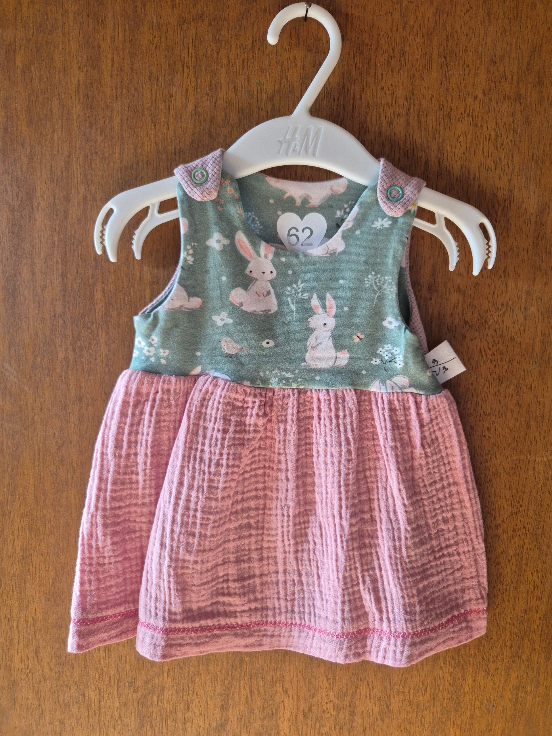 Süsses Kleid mit Druckknöpfen für kleine Hasenkinder in Grösse 62.