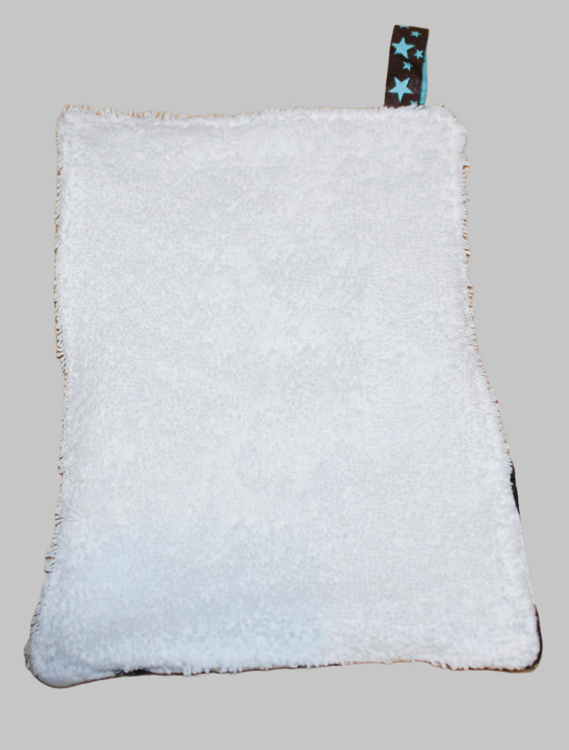 Dieser Waschlappen wird von Hand gefertigt und ist daher ein kleines Unikat. Seine Grösse kann leicht variieren. Hergestellt aus besonders schönen Stoffresten.